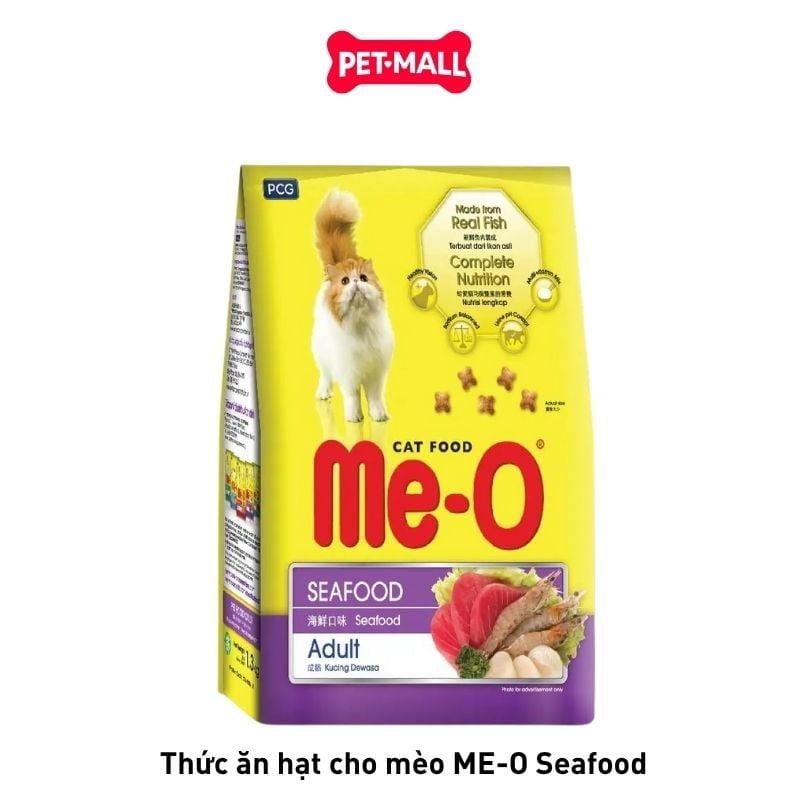 Hương vị thơm ngon mà mèo yêu thích Me-O Seafood chứa đầy đủ và cân bằng dinh dưỡng.
