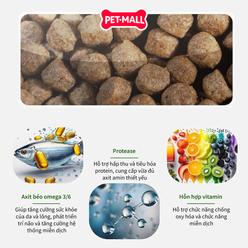 Đây là sản phẩm cao cấp được thiết kế phù hợp với tiêu chuẩn của Hiệp hội thức ăn chăn nuôi Mỹ (AAFCO)