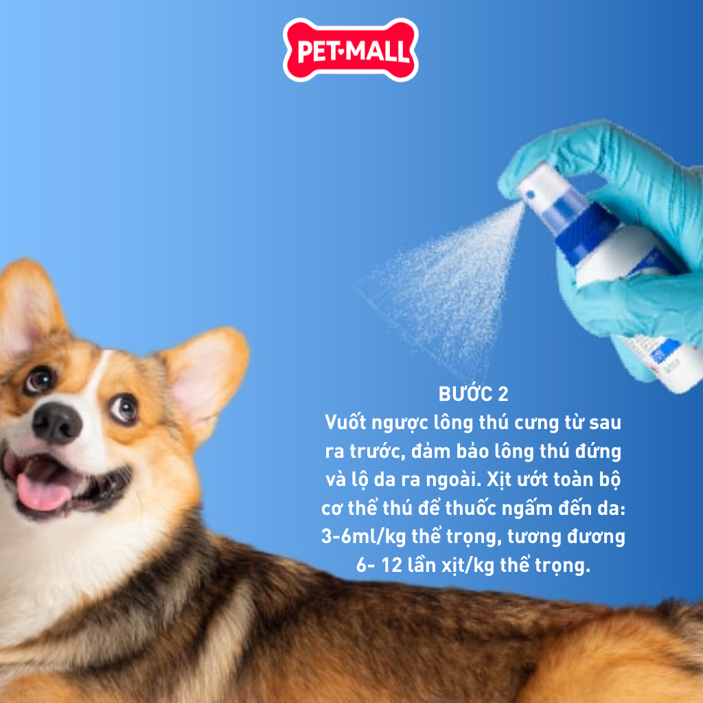 Vuốt ngược lông để lộ da và xịt đều toàn bộ cơ thể.