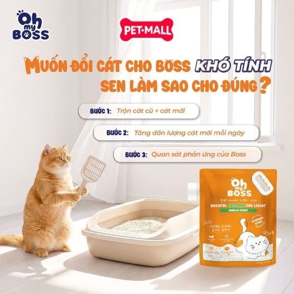 Cát sắn OhmyBoss Vanilla Scent là giải pháp vệ sinh hiện đại, thân thiện với môi trường và cực kỳ tiện lợi cho những người nuôi mèo trong không gian kín. Với nguồn gốc từ thực vật và hương thơm Vani dịu nhẹ, sản phẩm giúp kiểm soát mùi hiệu quả đồng thời giúp chủ nuôi dễ dàng quan sát và dọn dẹp khay vệ sinh mỗi ngày.