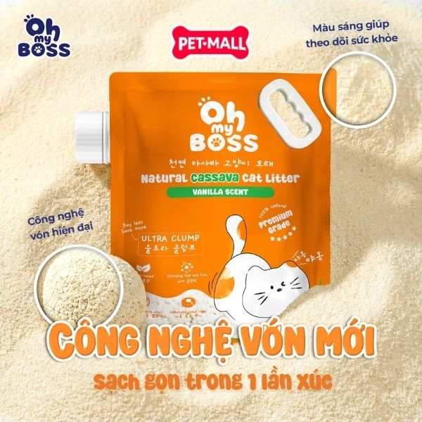 - 2.5kg - Cát vệ sinh mèo Cassava OhmyBoss Vanilla scent sắn tự nhiên hương Vani Petmall