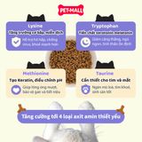 Phát triển Toàn diện: Tăng cường tới 4 loại Axit Amin thiết yếu (Methionine, Lysine, Tryptophan, Taurine) – những dưỡng chất quan trọng mà cơ thể mèo không thể tự tổng hợp, hỗ trợ chức năng tim mạch, thị lực và tăng cường miễn dịch.