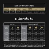 Thành phần chính: Bột cá, thịt gà (tiêu hóa gà khô), ngô vàng xay, lúa mì xay, bột đậu nành, gạo nấu bia.