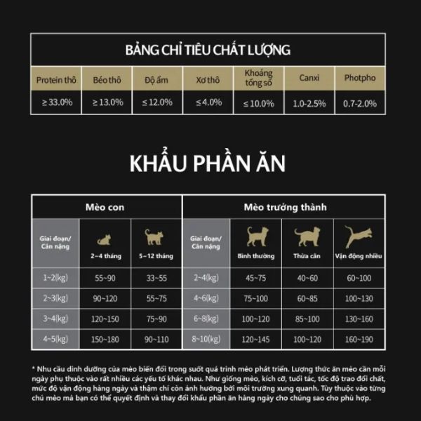 Cho mèo ăn trực tiếp theo khẩu phần phù hợp với cân nặng.