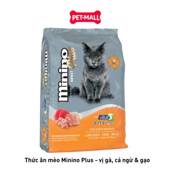 Tên sản phẩm: Thức Ăn Hạt Cho Mèo Minino Plus, Vị Gà, Cá Ngừ & Gạo – Mọi Lứa Tuổi