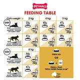 Cho mèo ăn theo liều lượng khuyến nghị trên bao bì, tùy thuộc vào trọng lượng và mức độ hoạt động.