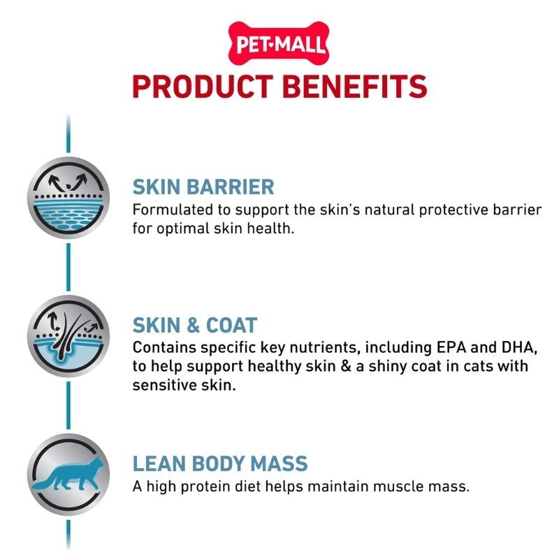 Thức ăn Royal Canin Skin & Coat là sản phẩm dinh dưỡng chuyên biệt, được bào chế theo chỉ định của bác sĩ thú y dành cho những chú mèo có làn da nhạy cảm hoặc bộ lông kém sắc. Công thức đặc chế giúp cải thiện sức khỏe da, làm cho bộ lông trở nên bóng mượt và chắc khỏe hơn, đồng thời hỗ trợ giảm thiểu tình trạng ngứa, gãy rụng lông.