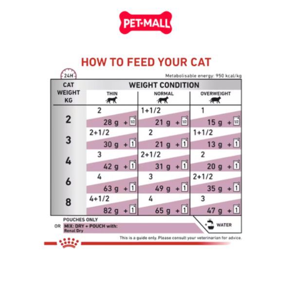 Sử dụng theo hướng dẫn khẩu phần trên bao bì, tùy thuộc vào cân nặng và tình trạng sức khỏe của mèo.