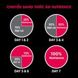 Chuyển đổi thức ăn: Chuyển đổi dần dần trong 5-7 ngày bằng cách trộn 25% thức ăn mới với 75% thức ăn cũ, sau đó tăng dần tỷ lệ thức ăn mới.