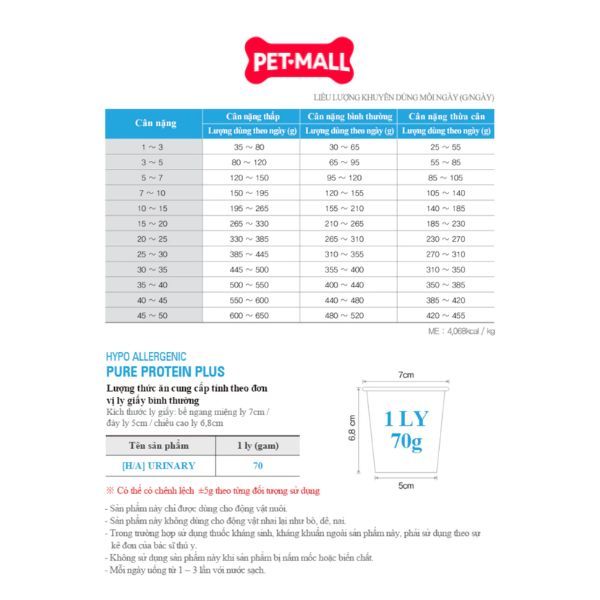 - Lưu ý quan trọng: Đây là sản phẩm thức ăn đặc trị, chỉ nên sử dụng khi có chỉ định và dưới sự giám sát của bác sĩ thú y. Không dùng cho chó đang mang thai, cho con bú hoặc chó con.