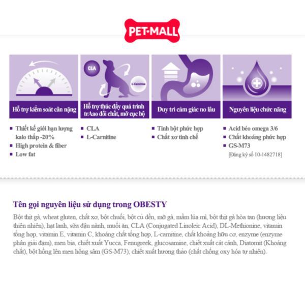 - Kiểm soát cân nặng: Công thức có hàm lượng chất béo thấp và chất xơ cao, giúp chó giảm cân một cách hiệu quả mà không làm chúng cảm thấy đói.