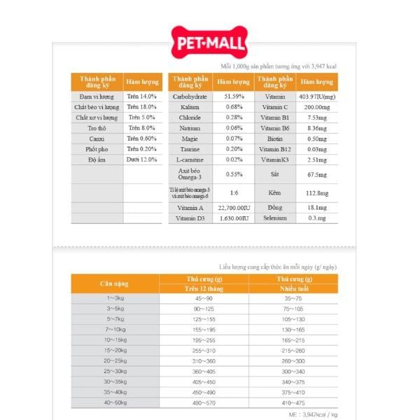 - Liều lượng khuyến nghị: Tham khảo bảng hướng dẫn trên bao bì sản phẩm. Liều lượng có thể thay đổi tùy thuộc vào trọng lượng, độ tuổi và mức độ hoạt động của chó.