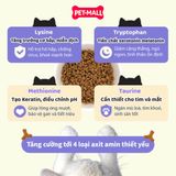 Dinh dưỡng Toàn diện: Tăng cường tới 4 loại Axit Amin thiết yếu (Methionine, Lysine, Tryptophan, Taurine) mà cơ thể mèo không thể tự tổng hợp, hỗ trợ phát triển cơ bắp, tim mạch và thị lực.