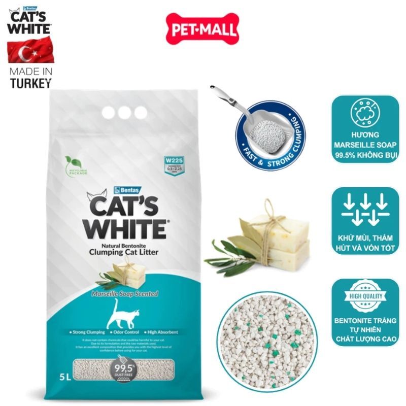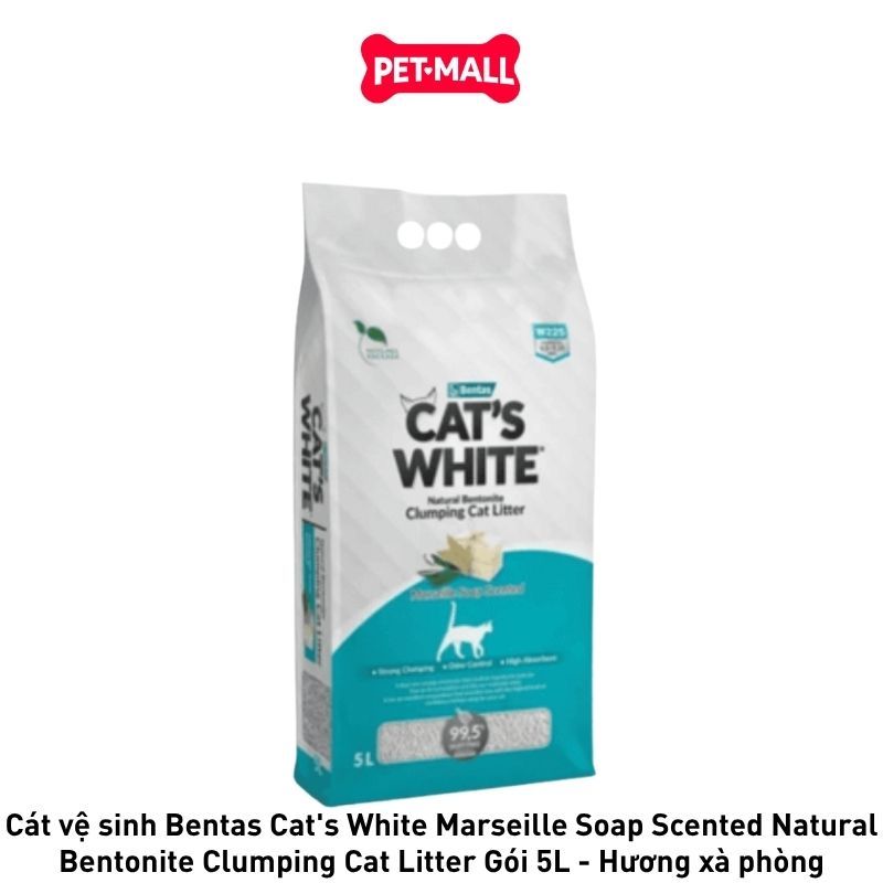 Cát vệ sinh Bentas Cat's White Marseille Soap Scented Natural Bentonite Clumping Cat Litter Gói 5L - Hương xà phòng, vón cục khử mùi tuyệt đối Petmall