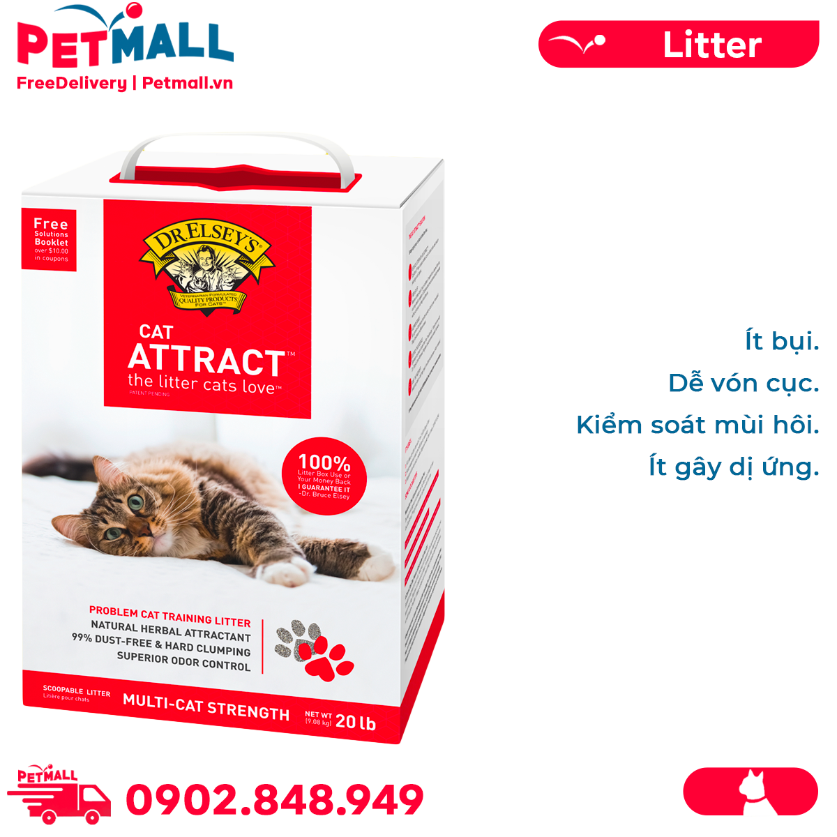 Cát vệ sinh Dr.ELSYES Precious Cat Attract Unscented Bentonite Cat Litter Hộp 9.08kg - Không mùi, hỗ trợ huấn luyện mèo đi vệ sinh Petmall
