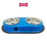 Chén đôi inox Pugmarks Feed Me Bowl Blue Color Size S - Màu xanh dương Petmall