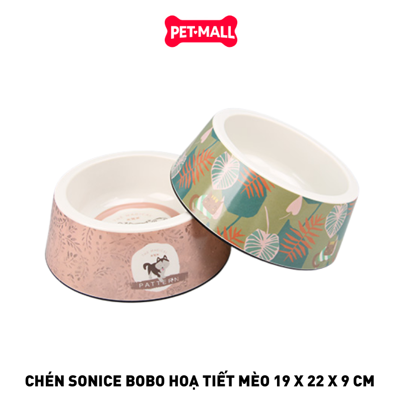 Chén SONICE bobo hoạ tiết mèo tropical 19 x 22 x 9 cm Petmall