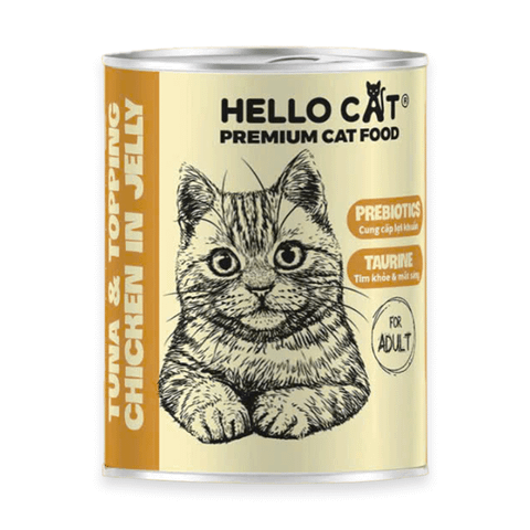 Combo 12 Lon 400G - Pate mèo HelloCat Premium Adult in Jelly - Mix Vị giúp bữa ăn của mèo luôn ngon miệng, đầy đủ dinh dưỡng