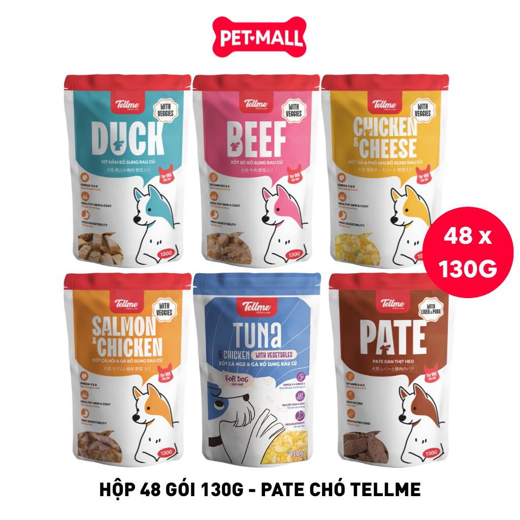 Combo 48 Gói 130G - Pate Chó TELLME Mix vị - Dành Cho Chó Mọi Lứa Tuổi Petmall