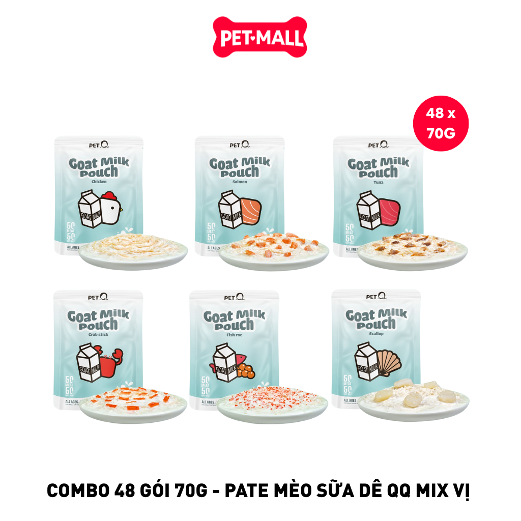 - Combo 48 Gói 70G - Pate mèo sữa dê QQ cho mọi lứa tuổi Mix vị Petmall