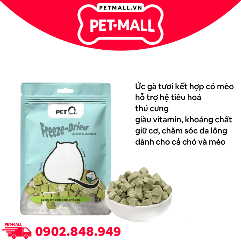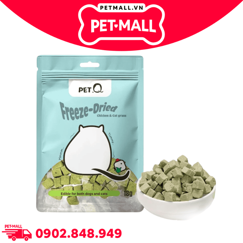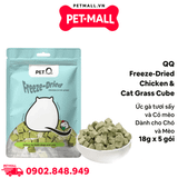 Combo 5 Gói 18G - Thức ăn đông khô cho chó mèo QQ Freeze-Dried Chicken & Cat Grass Cube - Ức gà tươi sấy và cỏ mèo Petmall