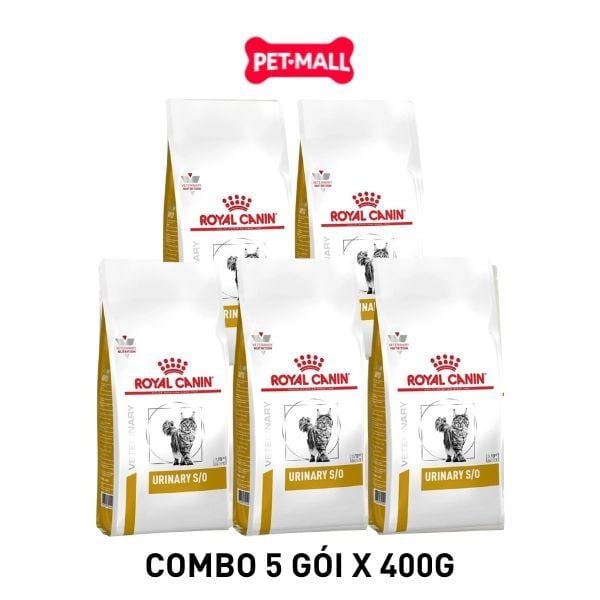 - Combo 5 gói 400G - Thức ăn mèo Royal Canin Urinary S/O Feline - Hỗ trợ trị sỏi bàng quang Petmall