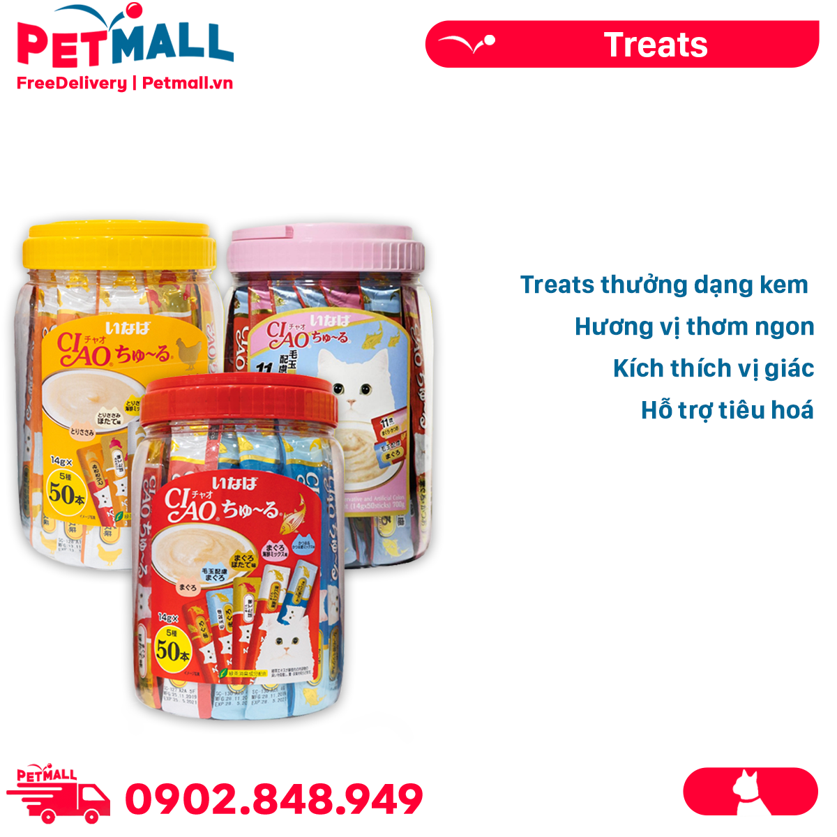 Combo 150 Gói Mix Vị - Treats Ciao Churu Tuna, Chicken with Vitamin, Green Tea, Collagen and Fiber Petmall
