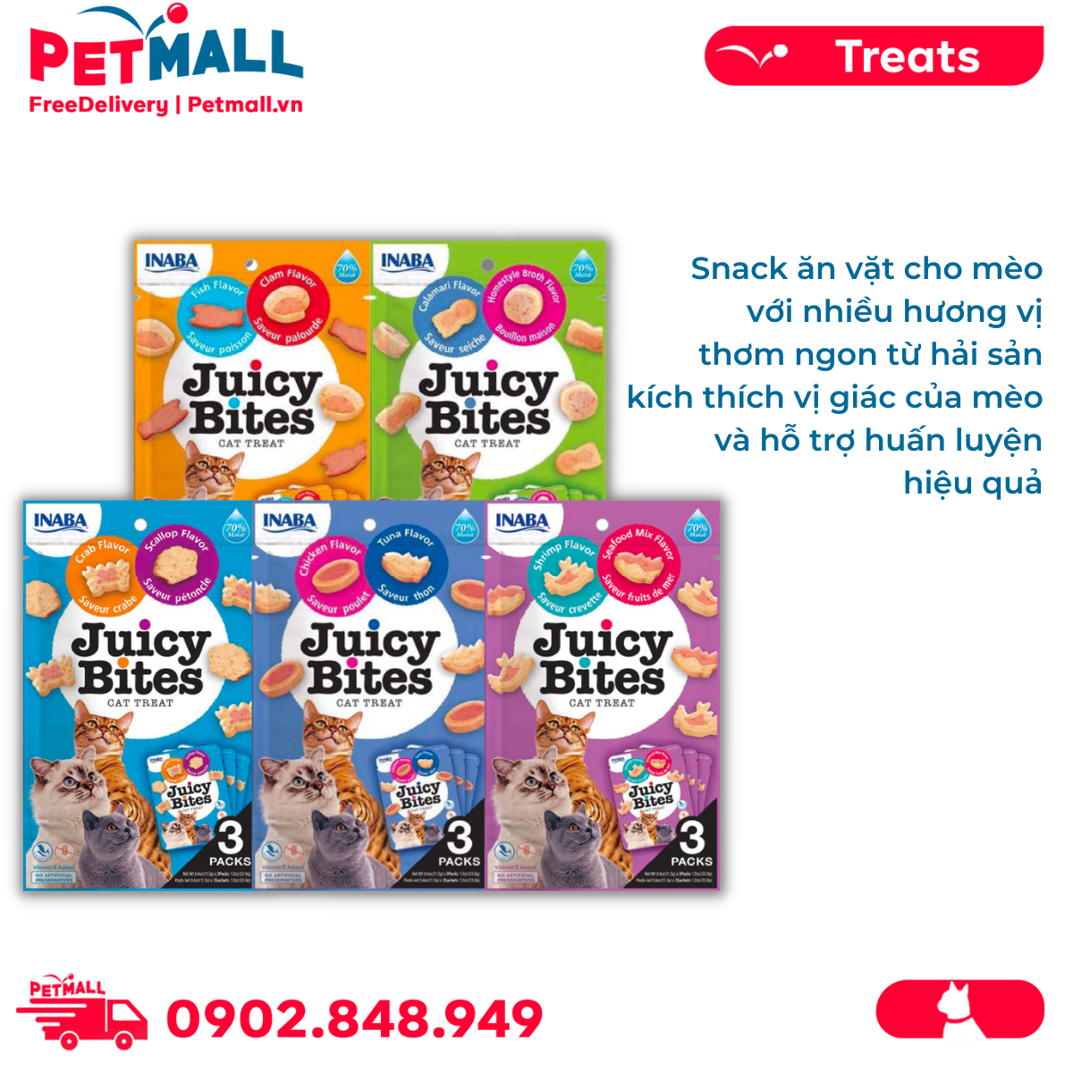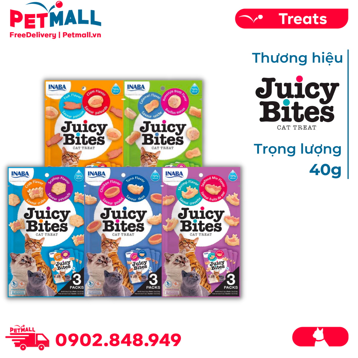 Combo Treats mèo Juicy Bites 40g Mix vị - 5 gói Petmall