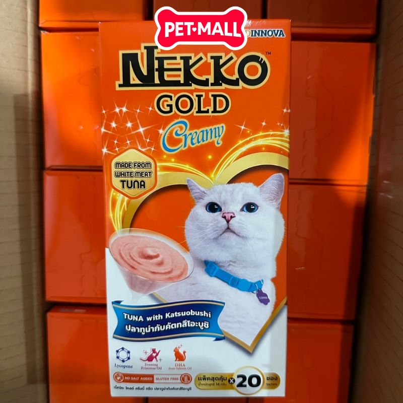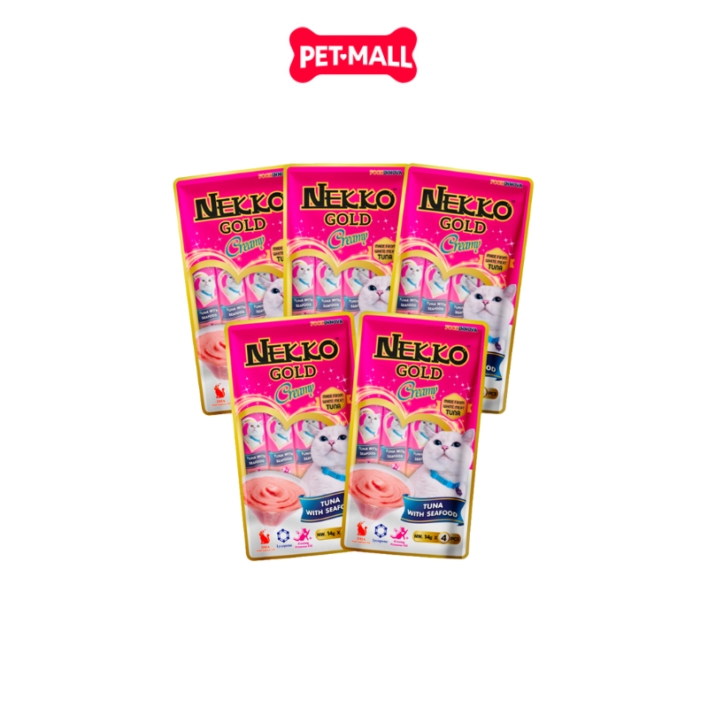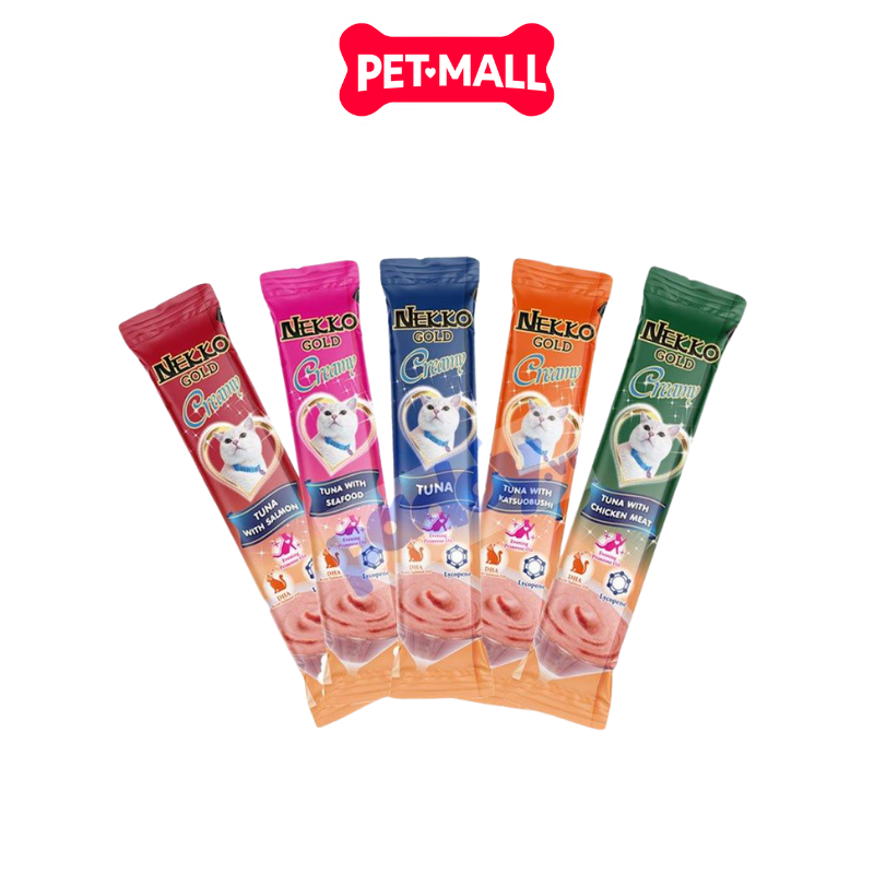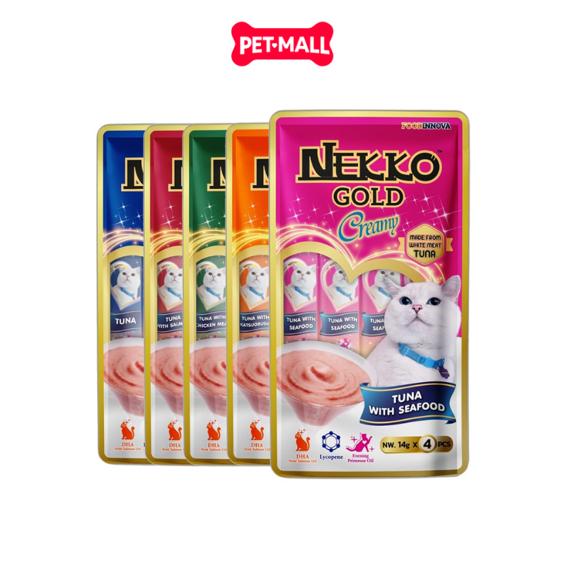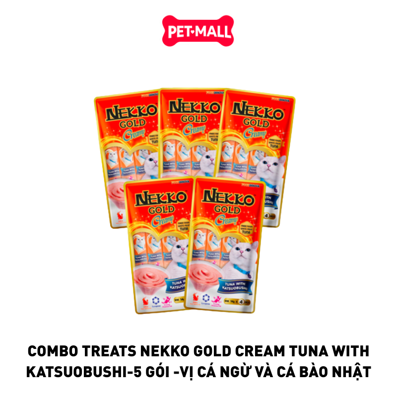 Combo 5 Gói 56G - Treats Nekko Gold Cream Tuna with Katsuobushi - Dạng kem, vị Cá ngừ và Cá bào Nhật Petmall