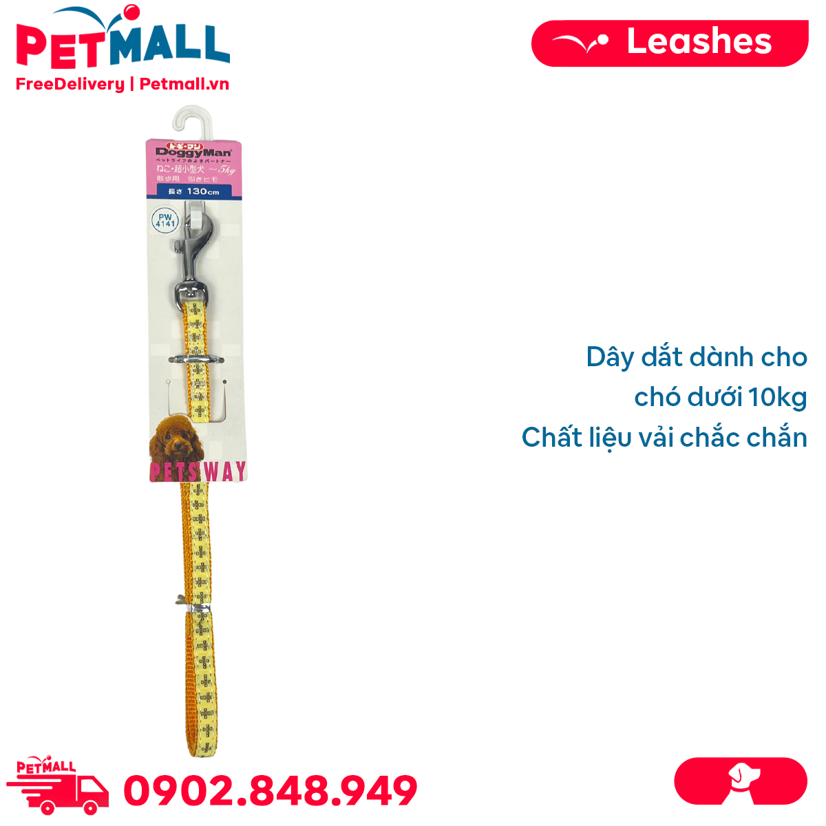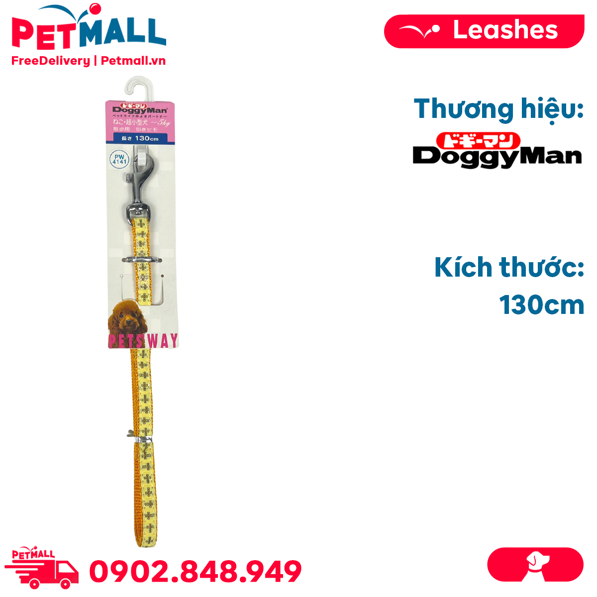 Dây dắt DoggyMan Size 5kg | 130cm - Màu vàng chữ thập Petmall