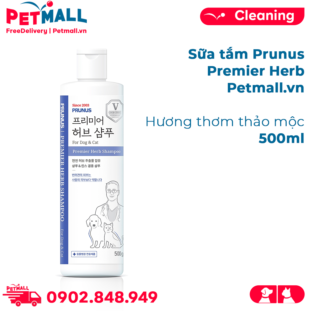Sữa tắm Prunus Premier Herb 500ml - Hương thơm thảo mộc Petmall