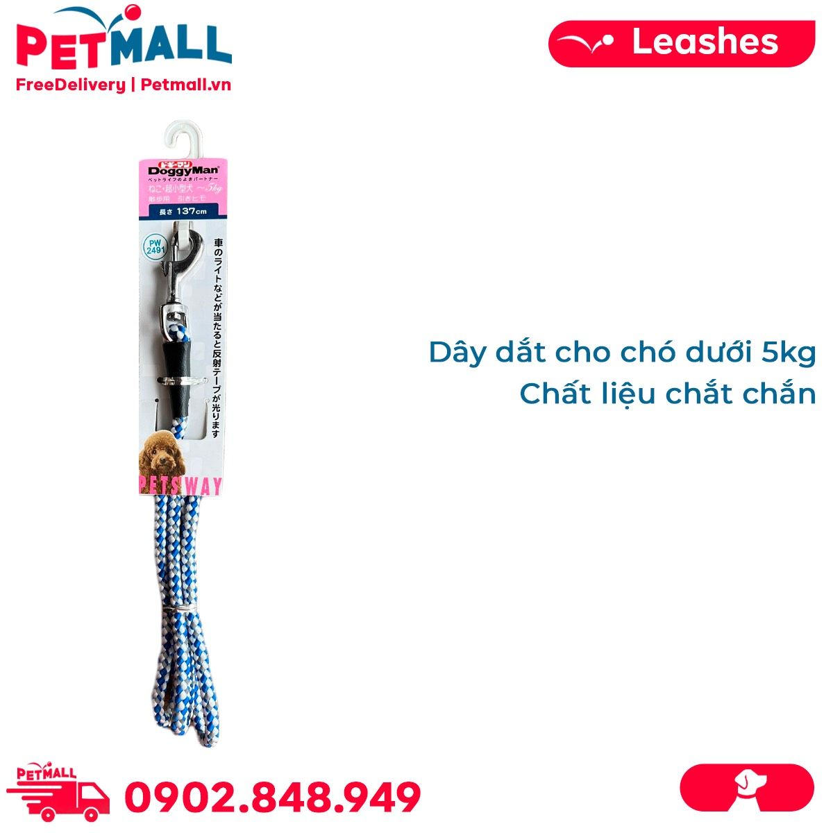 Dây dắt DoggyMan Size 5kg | 130cm - Dây bện xanh Petmall