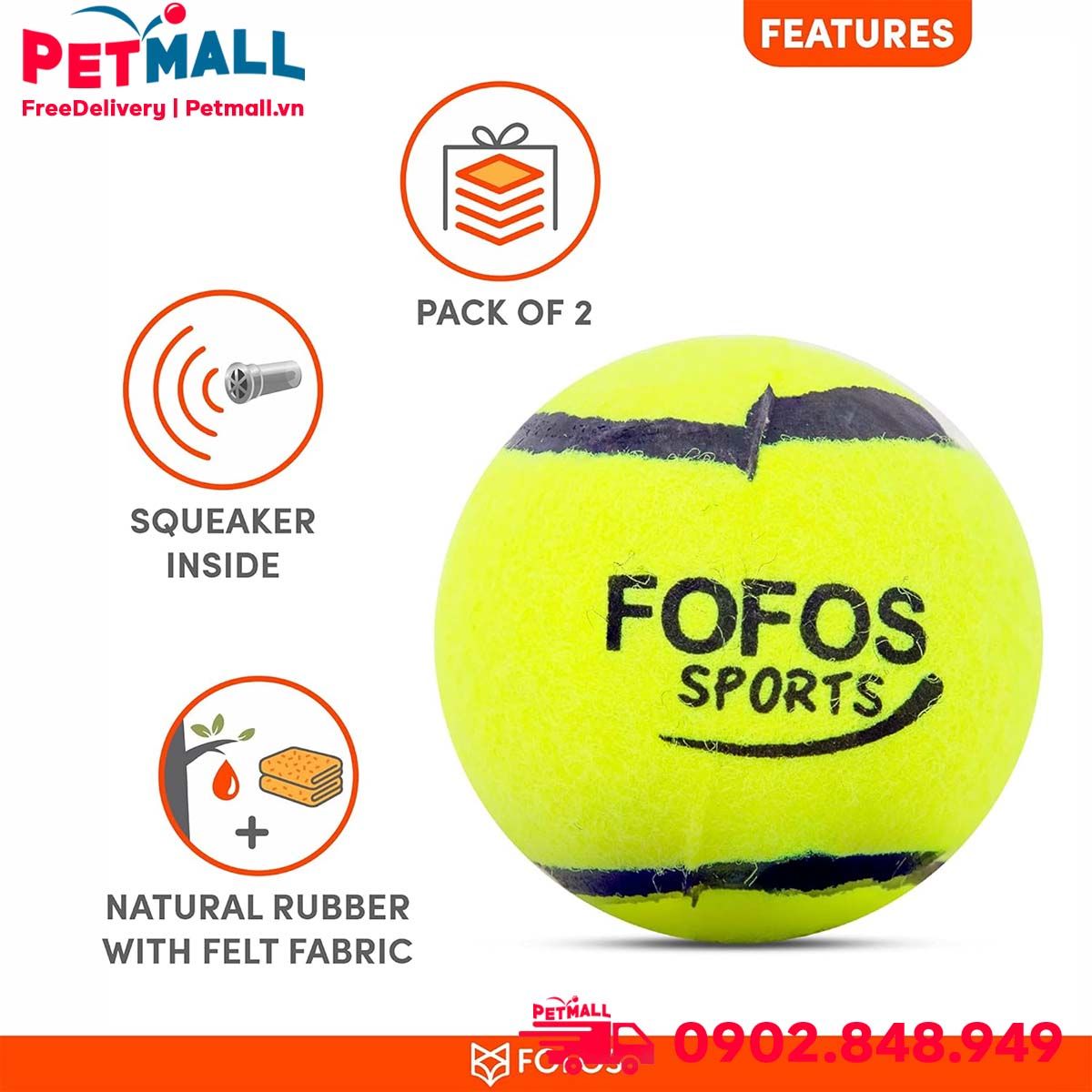 Đồ chơi FOFOS Throw Ball Fetch Dog Toys Size 6.5cm - Bộ 2 trái banh tenis Petmall