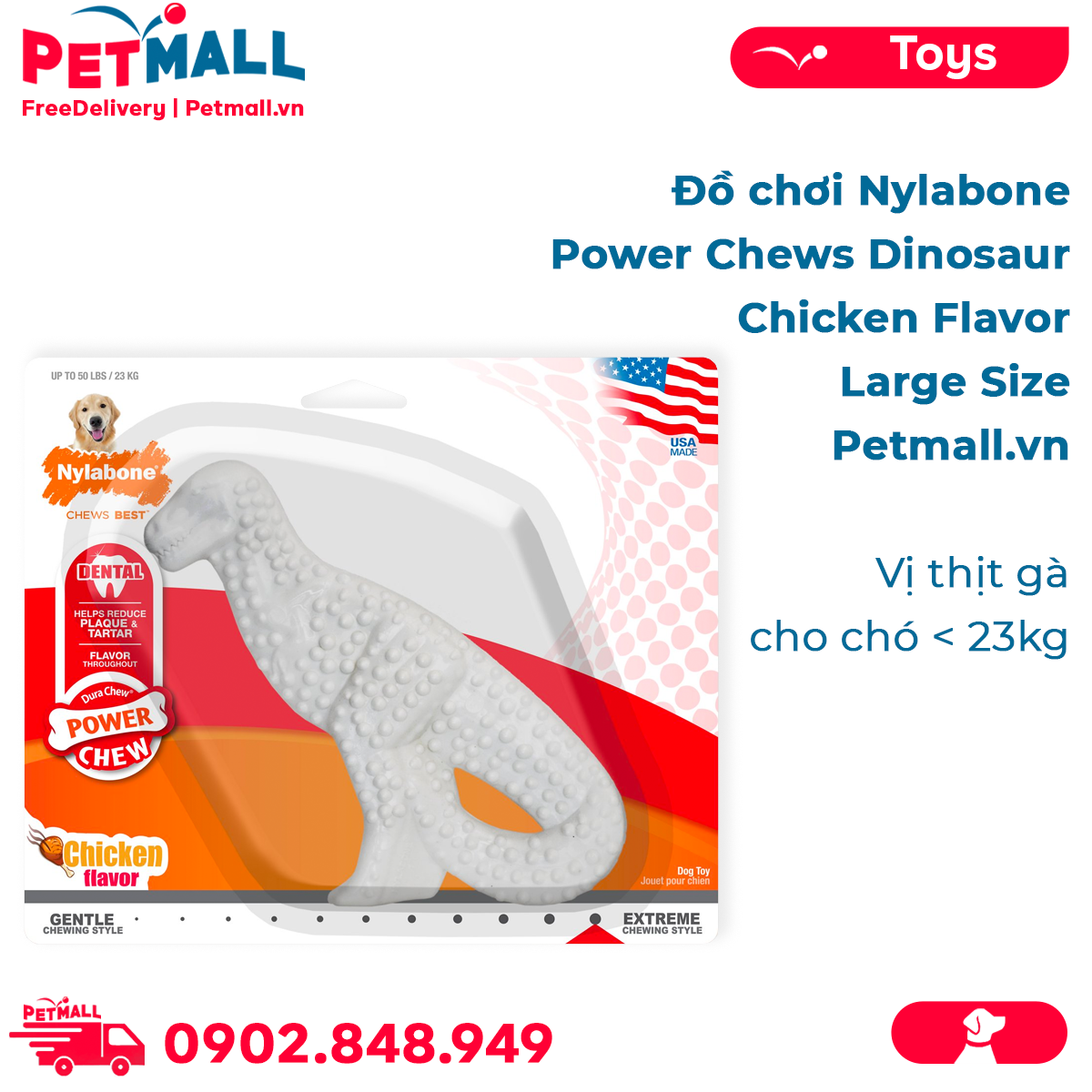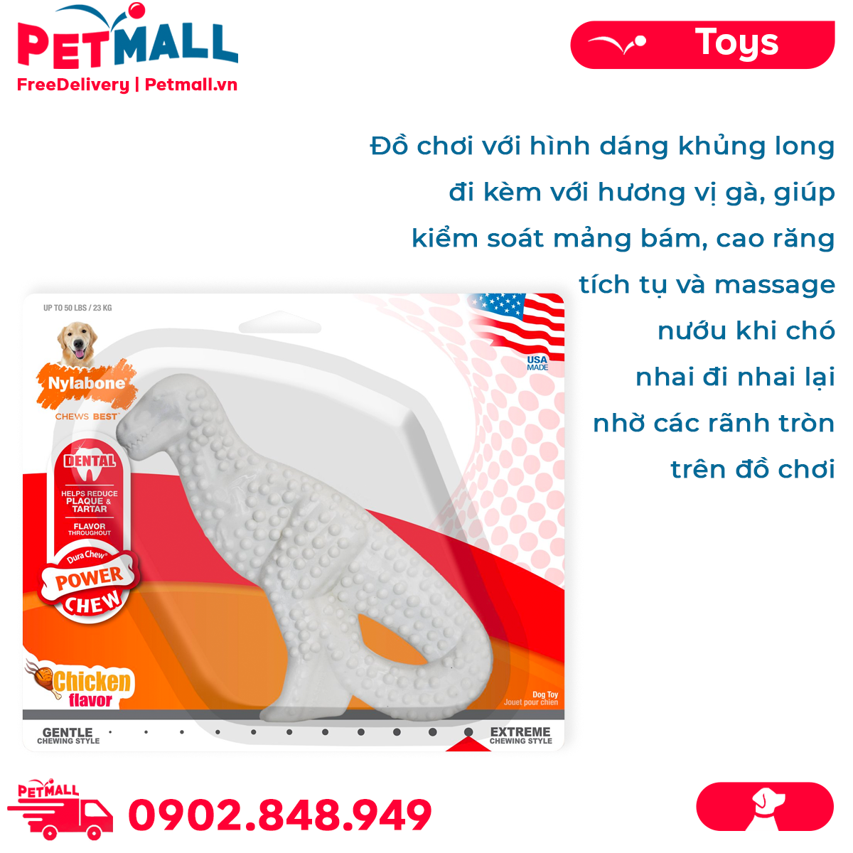 - Đồ chơi Nylabone Power Chews Dinosaur Chicken Flavor Toys Large Size - Vị thịt gà, cho chó < 23kg Petmall