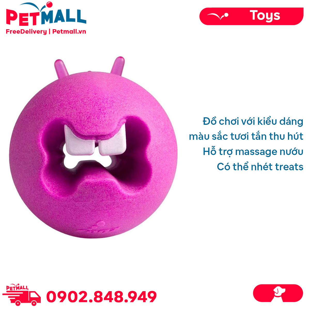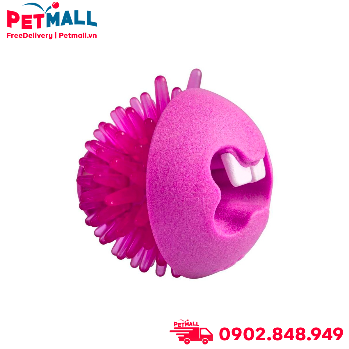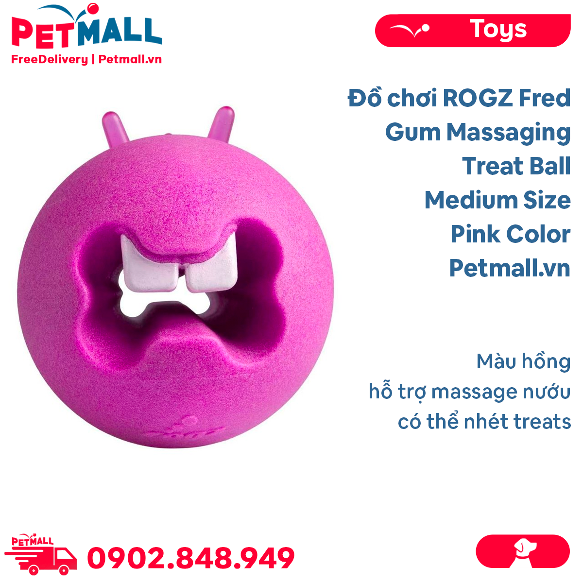 Đồ chơi ROGZ Fred Gum Massaging Treat Ball Medium Size | Pink Color - Màu hồng, hỗ trợ massage nướu, có thể nhét treats Petmall
