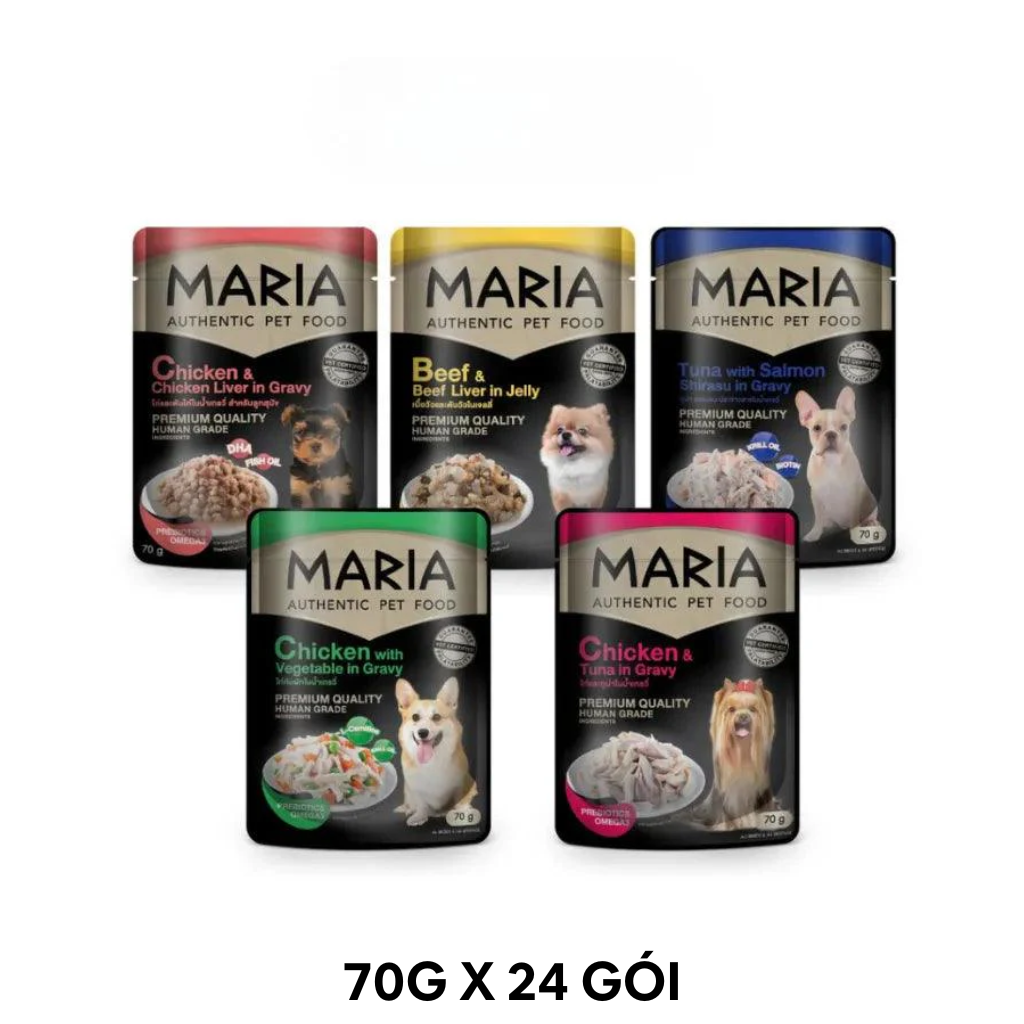 Hộp 12 Gói 70G - Pate chó Maria Chicken with Lamb Heart in Jelly - Thị Gà, Tim Cừu Petmall
