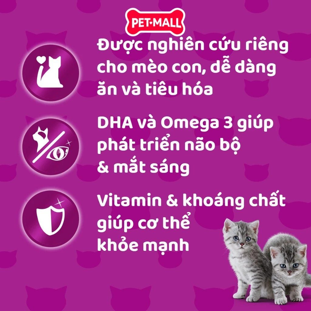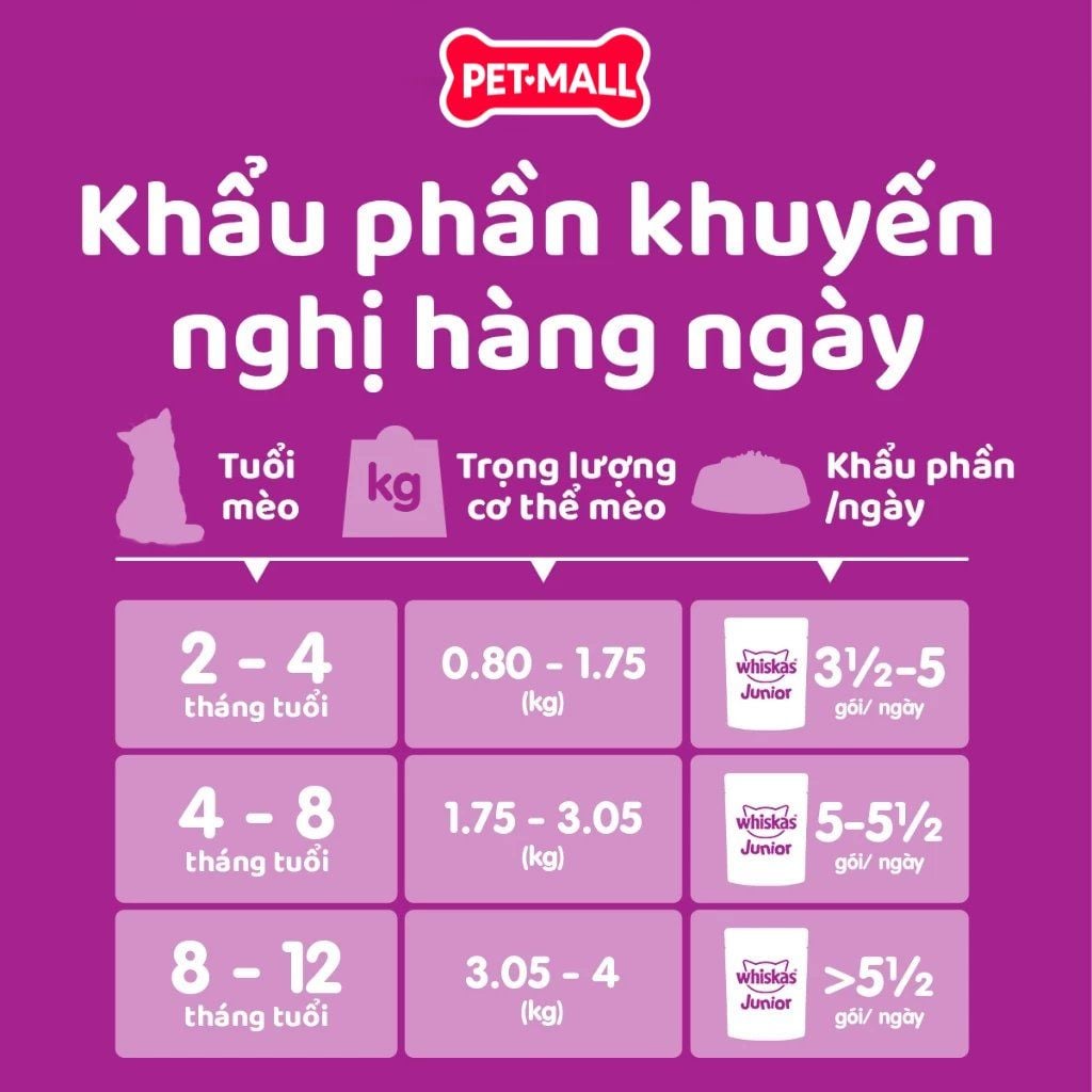 Mèo con (Kitten): 1–2 gói/ngày, chia 2 bữa.