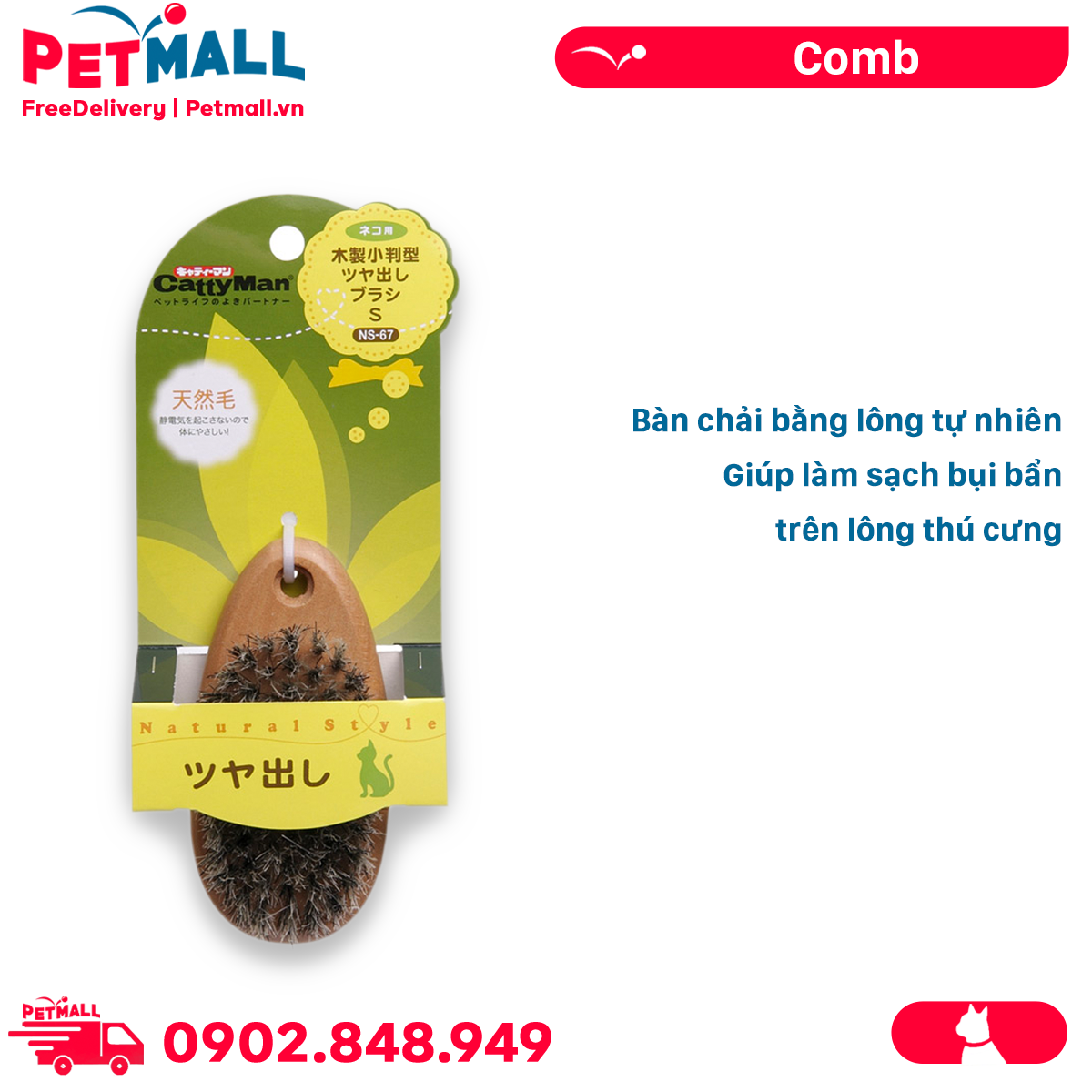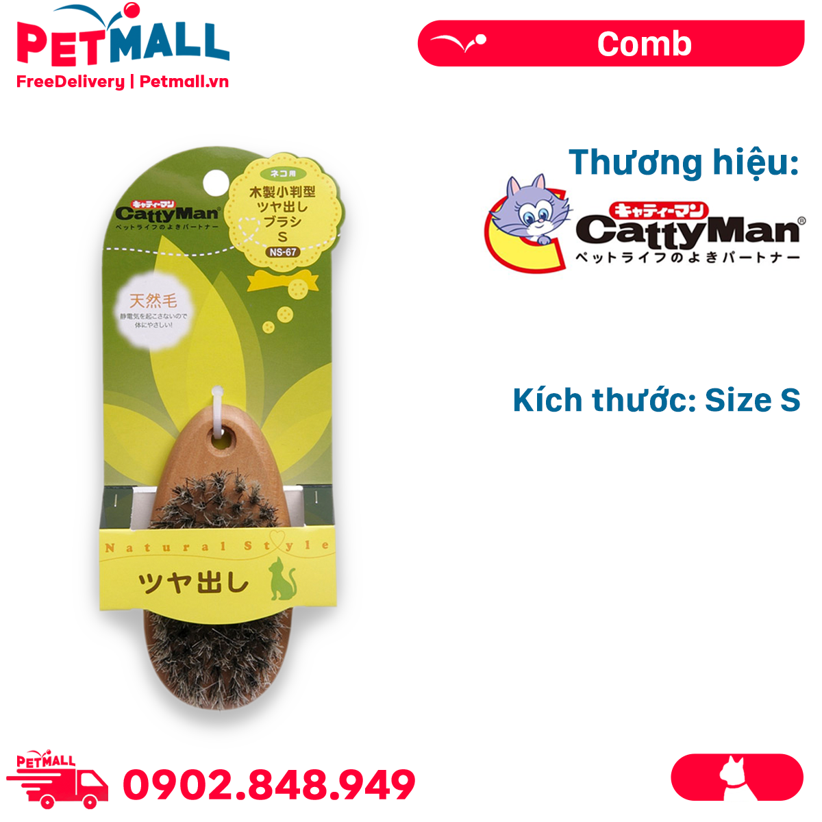 Lược CattyMan Wood Natural Style Comb Size S - Bàn chải lông tơ tự nhiên, dành cho Mèo Petmall