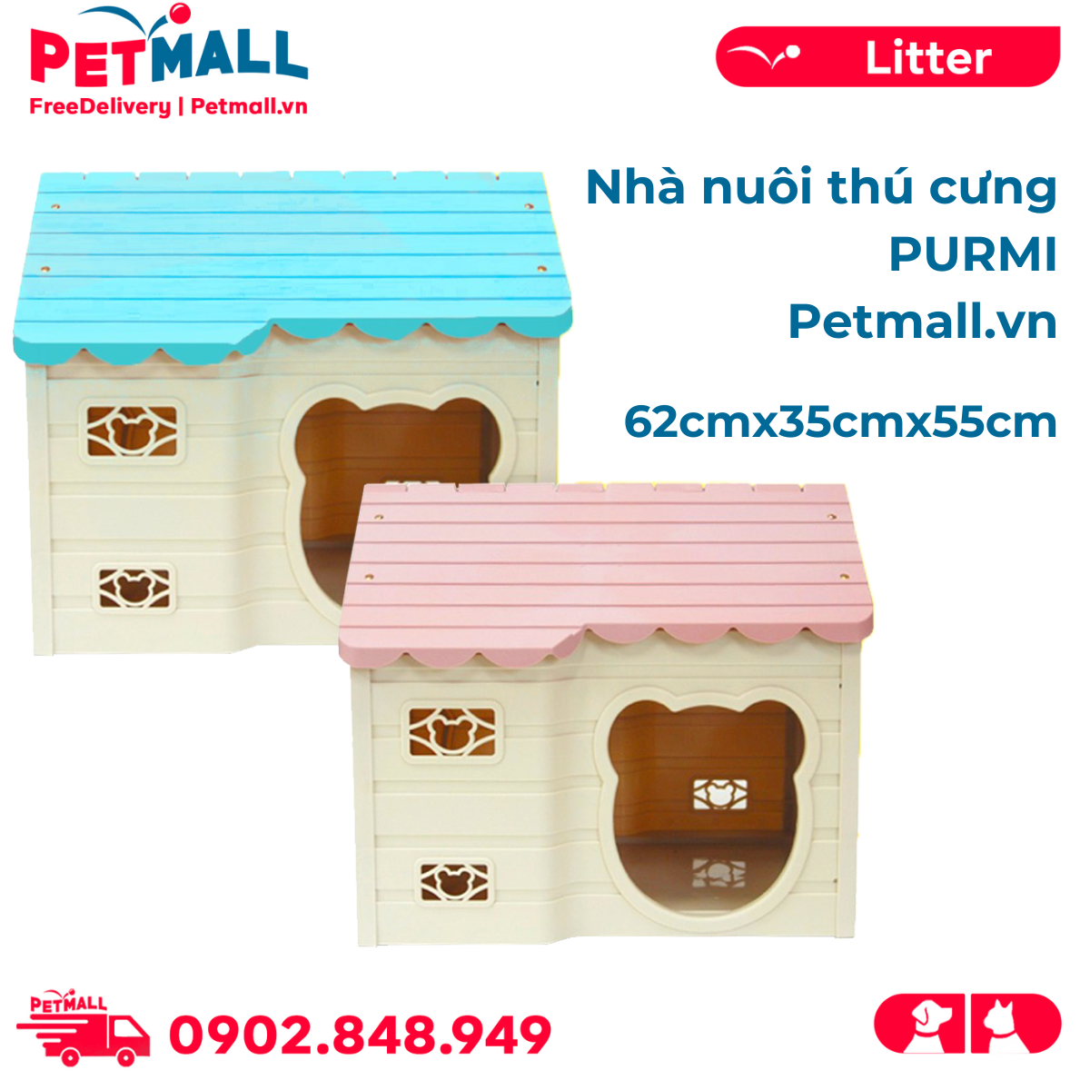Nhà nuôi thú cưng Purmi size 62cm x 35cm x 55cm Petmall