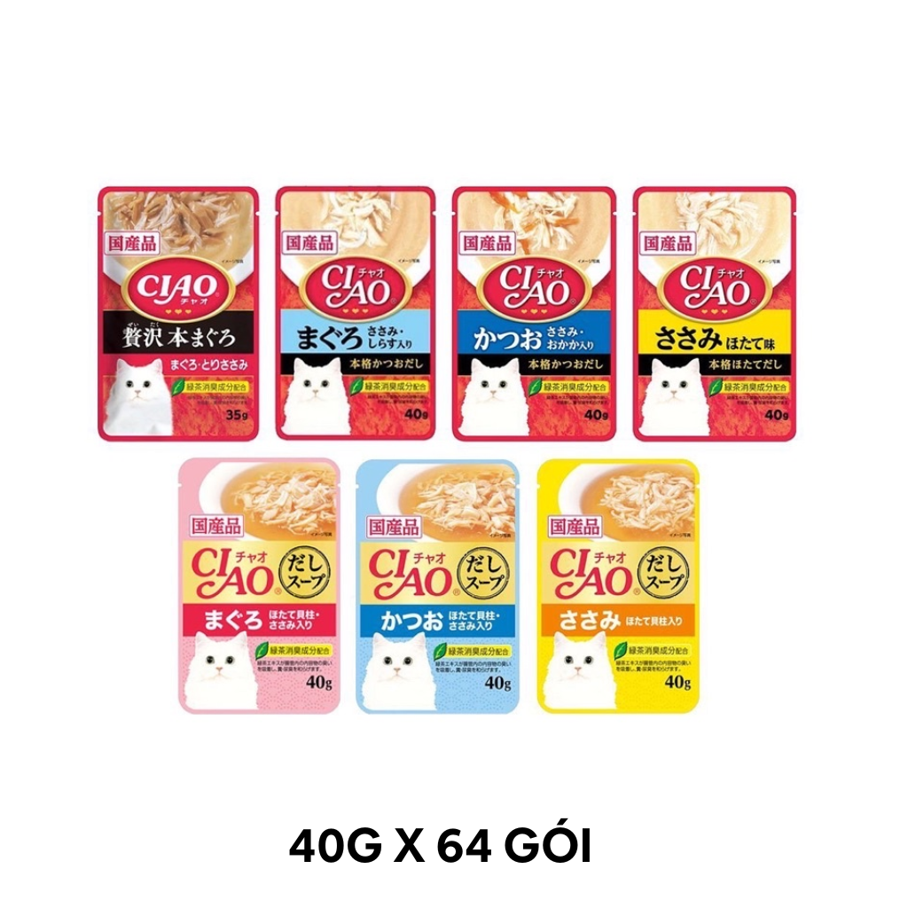 - Hộp 16 Gói 40G - Pate mèo CIAO Soup Tuna Maguro & Scallop Topping Chicken Fillet - Vị thịt gà, Cá ngừ và Sò Petmall