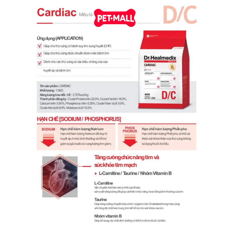 - 1.5KG - Thức ăn chó Dr.Healmedix Cardiac D/C - Hỗ trợ bệnh tim Petmall