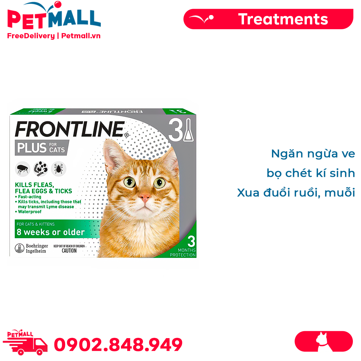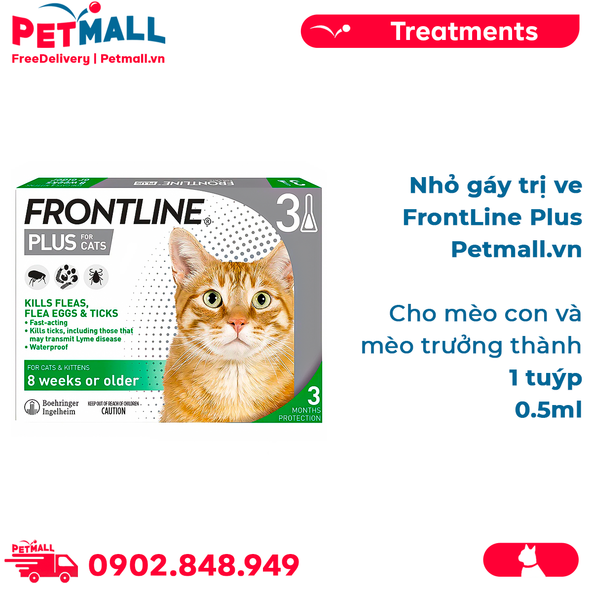 1 tuýp - Nhỏ gáy trị ve FrontLin.e Plus 0.5ml - Cho mèo con và mèo trưởng thành Petmall