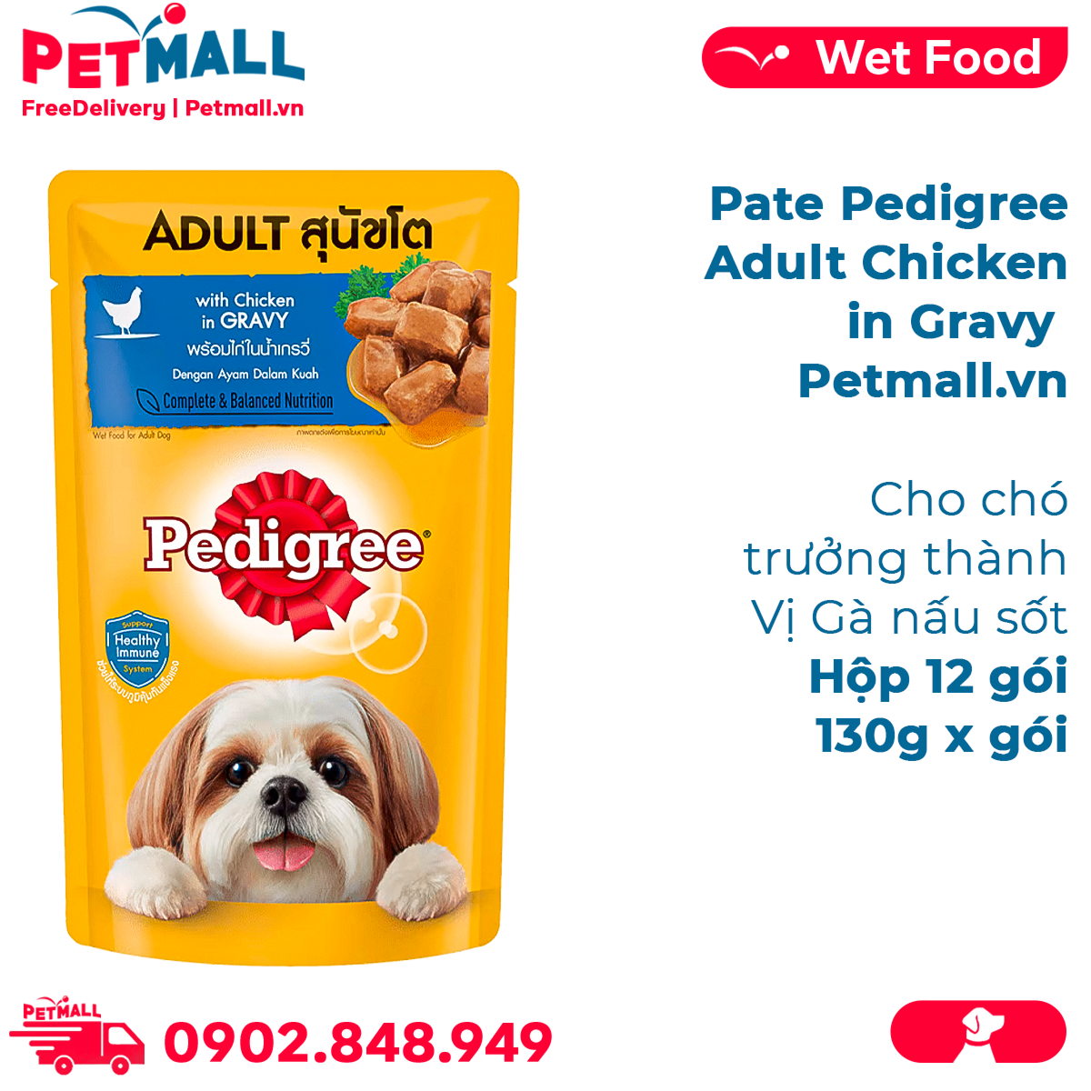Hộp 12 Gói 130G - Pate Pedigree Adult Chicken in Gravy - Vị gà nấu sốt, cho chó trưởng thành Petmall