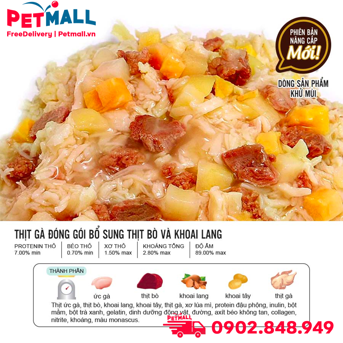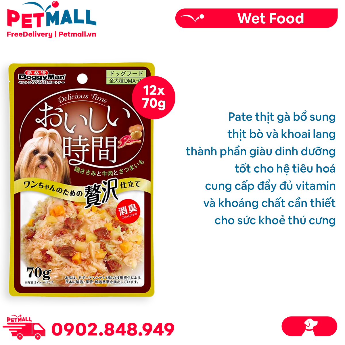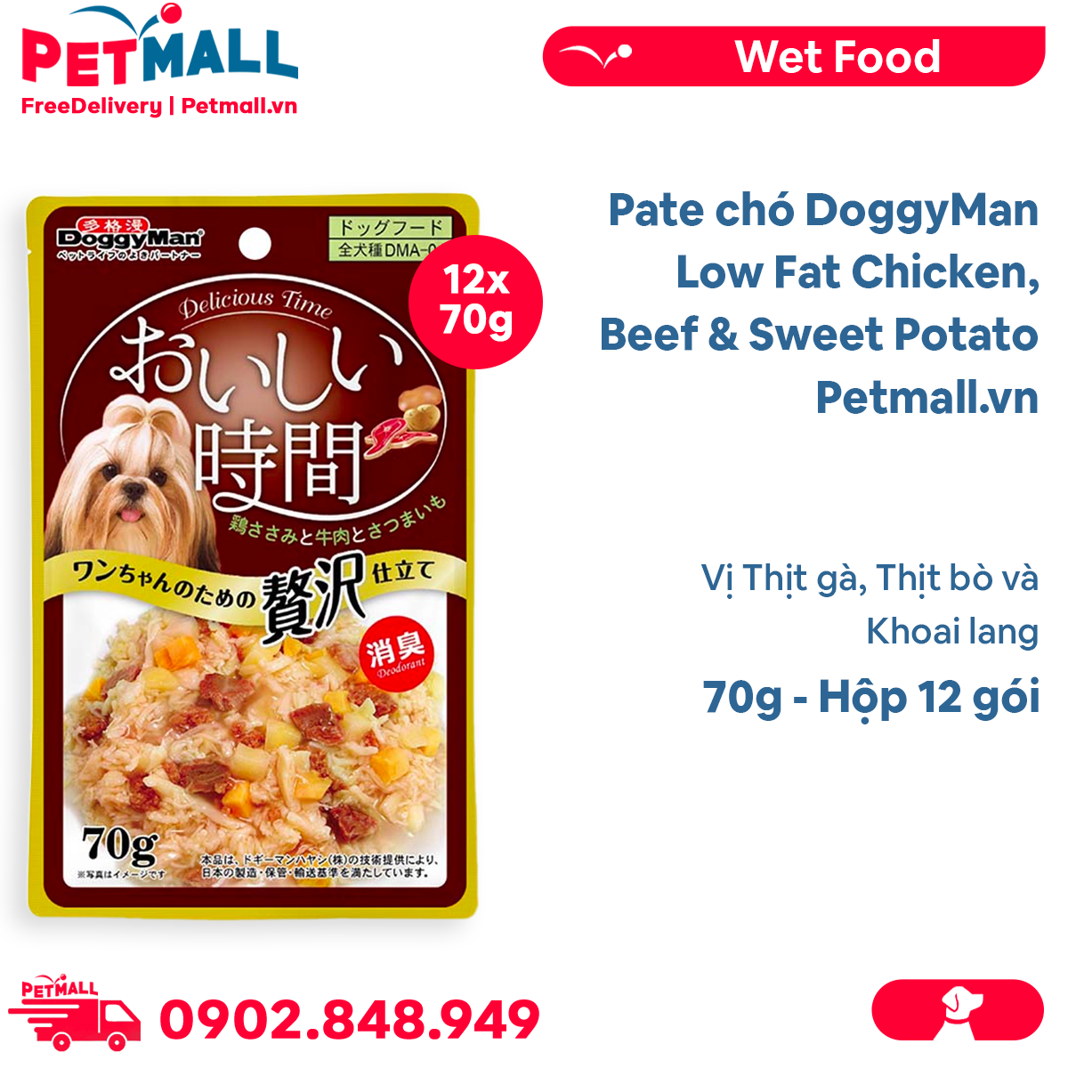 Hộp 12 gói 70G - Pate chó DoggyMan Low Fat Chicken, Beef & Sweet Potato - Vị Thịt gà, Thịt bò và Khoai lang Petmall