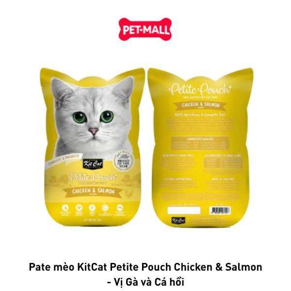 Hộp 12 gói 70g - Pate mèo KitCat Petite Pouch Chicken & Salmon - Vị Gà và Cá hồi Petmall