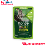 Thức ăn hỗn hợp hoàn chỉnh công thức dành cho mèo triệt sản Monge Bwild Chunkies Sterilised Wild Boar with Vegetables.