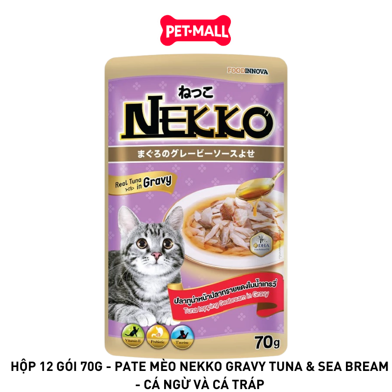 Hộp 12 Gói 70g - Pate mèo NEKKO GRAVY Tuna & Sea Bream - Cá ngừ và Cá tráp Petmall