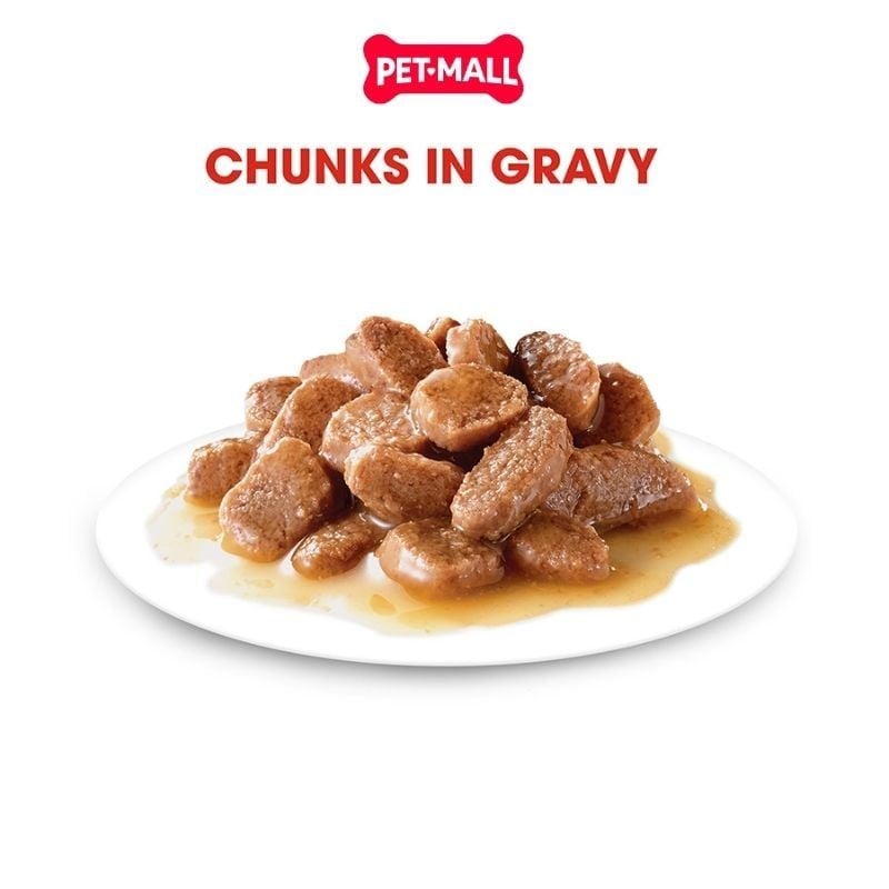 Kích thích vị giác: Kết cấu miếng thịt mềm trong nước sốt sánh mịn (Gravy) có hương vị thơm ngon hấp dẫn, giúp mèo ăn ngon miệng hơn.