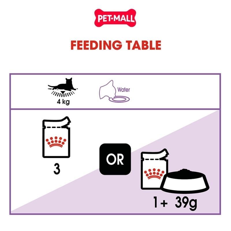 Kết hợp: Sản phẩm có thể dùng riêng hoặc trộn chung với thức ăn hạt khô Royal Canin Sterilised để đạt hiệu quả kiểm soát cân nặng và dinh dưỡng tối ưu.