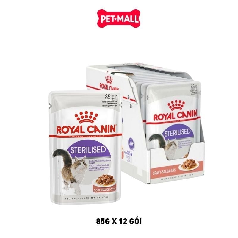 - Hộp 12 Gói 85G - Pate mèo Royal Canin Sterilised Gravy cho mèo triệt sản Petmall